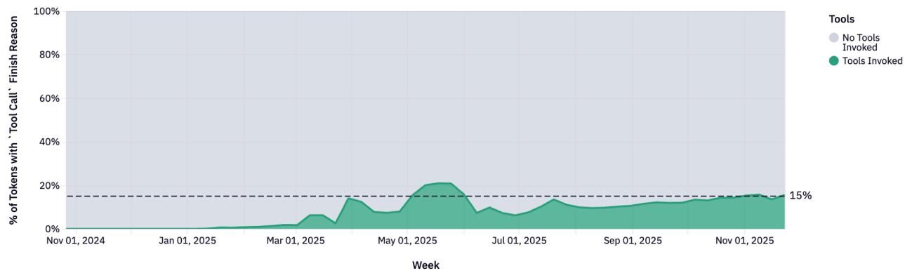 Рисунок 12: Доля токенов с успешным вызовом инструментов.